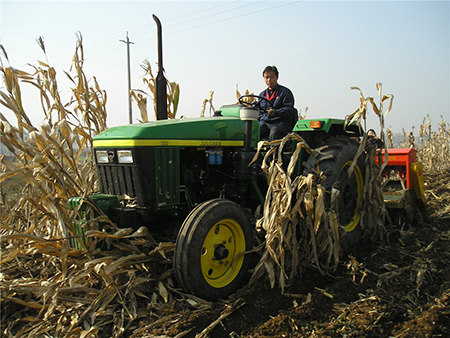 該機可以再也米稈直立地、秸稈還田地、小麥高茬浮稈地、深翻地等不同前茬條件下,一次性完成滅茬稈、開(kāi)溝、播種、施肥、覆土、鎮壓等多道工藝。配置指甲式的玉米精量排種器與勺式的相比在同一質(zhì)量下由每小時(shí)前進(jìn)5km提高到8km。底盤(pán)采用變速旋耕機,可根據拖拉機不通的前進(jìn)速度和當地的農藝要求、土質(zhì)差別,靈活變換三種刀軸轉速,徹底解決了拖拉機跑的快效果差,跑的慢了效益差的問(wèn)題。